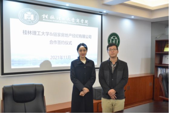 11月11日下午,我院与链家房地产经纪有限公司达成战略合作,双方将联合培养新时代房地产行业优质人才。签约仪式在屏风校区7206会议室举行,学院房产教研室主任黄振育,链家房地产经纪有限公司校招经理覃思嘉,学院2022届毕业生辅导员出席签约仪式。