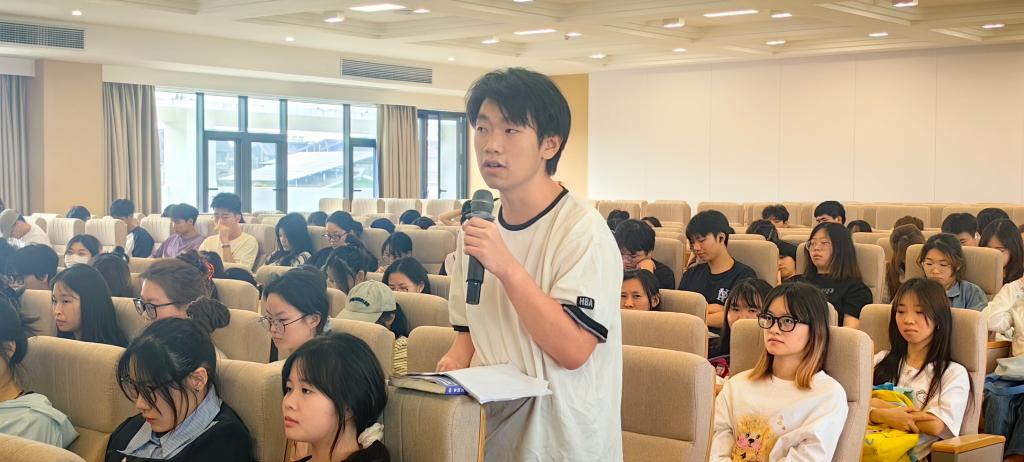 会上,李雷以“在激流中锚定方向——与同学们共话考研的理性选择与韧性成长”为主题展开报告。他从时代坐标与个体坐标两个视角切入,深入剖析了“为什么选择考研”这一关键问题。他指出,学院始终将考研工作视为人才培养的重要环节,积极构建了涵盖导师智库精准指导、资源平台丰富供给、心理护航全程陪伴、奖助激励多维助力的全方位考研支持系统,为考研学生提供强大的后盾。同时,他从目标拆解、资源地图、节奏把控和资源管理四个维度,为同学们绘制了一幅科学备考的四维作战图。他鼓励同学们要树立明确目标,合理规划备考进度,充分利用各类资源,以坚韧不拔的毅力应对备考过程中的困难与挑战,勇敢开辟人生新篇章。在互动交流环节,同学们积极踊跃地提出自己在考研备考过程中遇到的困惑与问题,李雷针对同学们的提问一一给予细致且有针对性地解答,为同学们答疑解惑,指明方向。