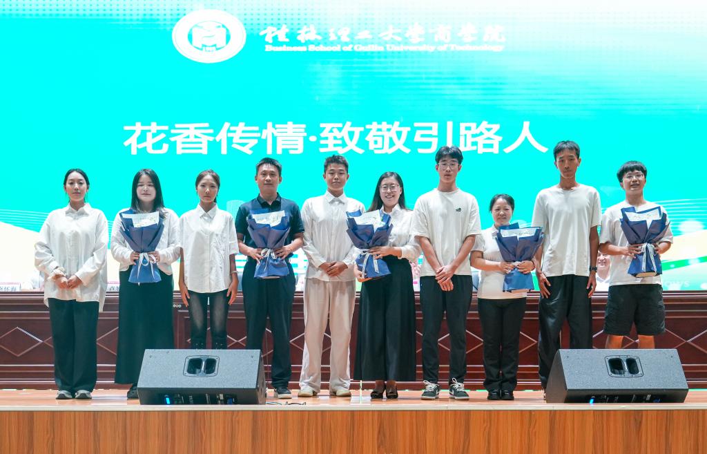 会上,学院党委副书记、院长李雷代表学院向商学院2025级本科生的到来表示热烈欢迎和衷心祝贺,并以六个“不是”,对大学“是什么”进行阐释,勉励新生要珍惜时光、明确目标、脚踏实地,用实际行动书写大学四年的精彩答卷。在“青春对话·梦想接力”发言环节中,新生代表杨谨、在校生代表杨艳秀、校友代表李怀海和教师代表李彦庆分别从“初心”“成长”“成就”和“寄语”四个维度,分享与商学院的故事,展现了商院精神的延续与活力。随后,举行的“薪火传递”仪式中,学院党委书记白凌婷、院长李雷为新生班级代表赠送《习近平与大学生朋友们》第二卷,鼓励同学们坚定理想信念、勇担时代使命。适逢教师节,新生代表向教师献花,全场齐声祝福“老师节日快乐”。