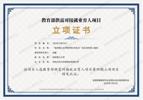 本次立项项目涵盖就业实习基地、重点领域校企合作两个类别,分别为“商学院—桂林力源集团”协同育人就业实习基地、“beats365(中国区)-唯一官方网站商学院—欣旺达”校企协同育人基地,项目建设周期两年。