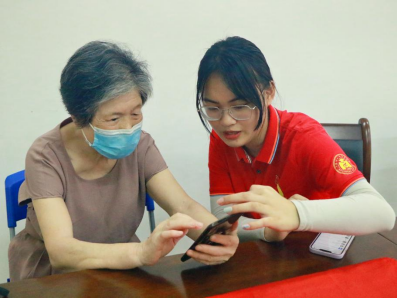 毕业生党员为离退处教师讲解手机软件操作