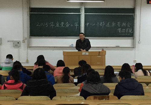 2016年1月7日中午,在屏风2101教室,学生党务中心召开2015年干部述职答辩会。学生党务中心指导老师李永伟,工作中心各部部长和各支部书记、委员参加述职答辩会。党务中心副主任黄利波主持会议。