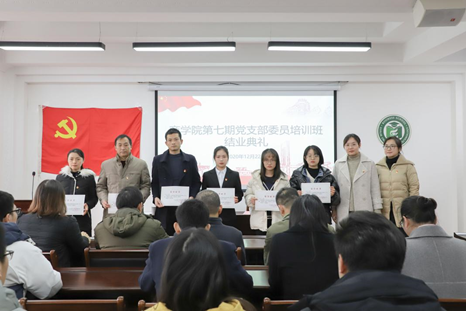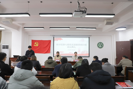 12月22日下午,商学院第七期党支部委员培训班结业典礼于屏风校区教七栋309会议室顺利举行。学院党委副书记沈菲菲、专职组织员梁译匀,以及学院教工、学生党支部委员参加了本次结业典礼。