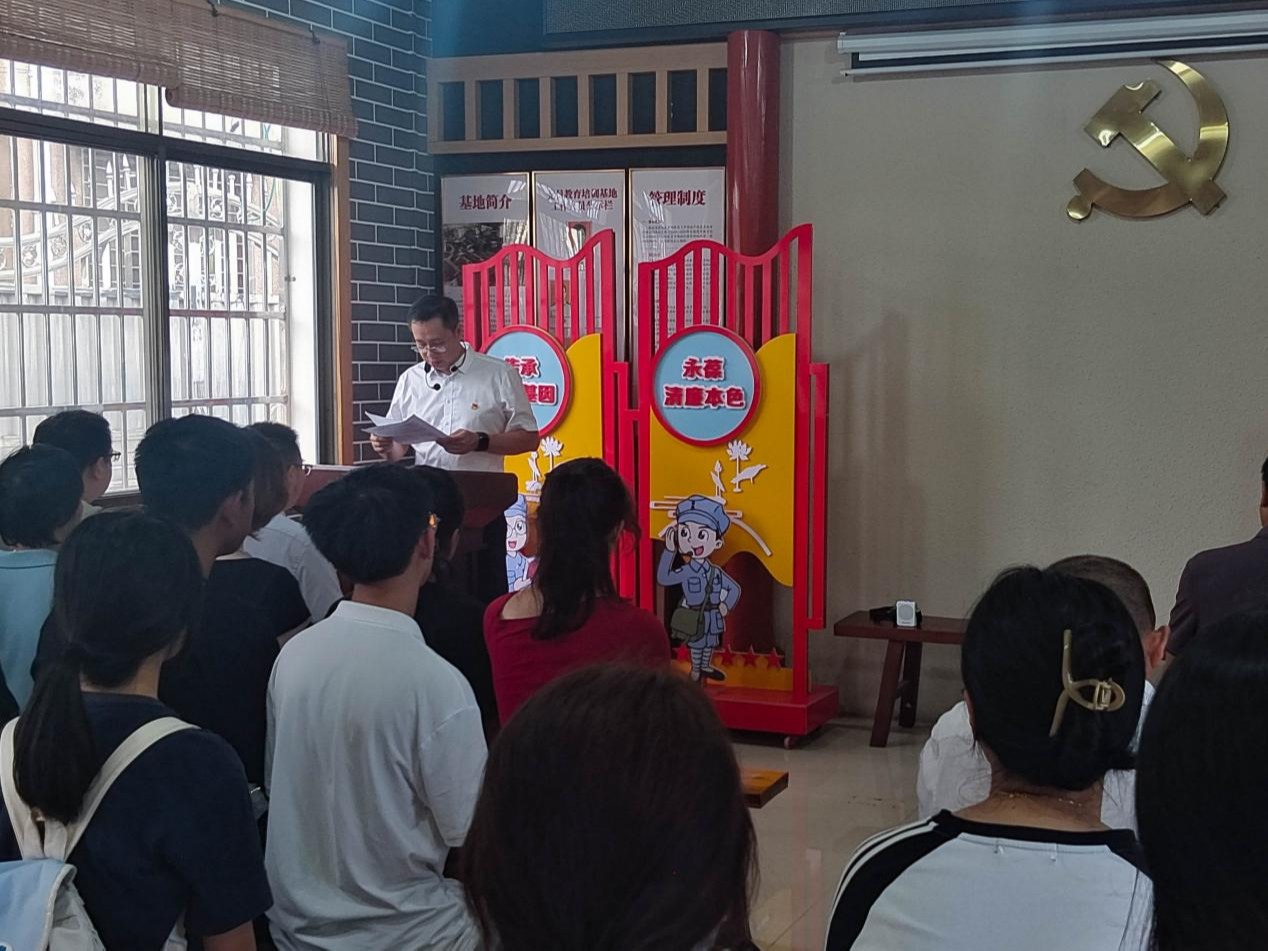 为纪念中国人民抗日战争暨世界反法西斯战争胜利80周年,筑牢党员干部思想根基、强化党性修养,9月26日下午,学院于八路军桂林办事处灵川县路莫村军需物资转运站(以下简称“转运站”)纪念馆开展“传承抗战精神,凝聚奋进力量”主题党日活动,通过沉浸式参观学习重温革命历史。本次活动由学院党委委员、副院长卢智增带队,共有50名师生党员参加。