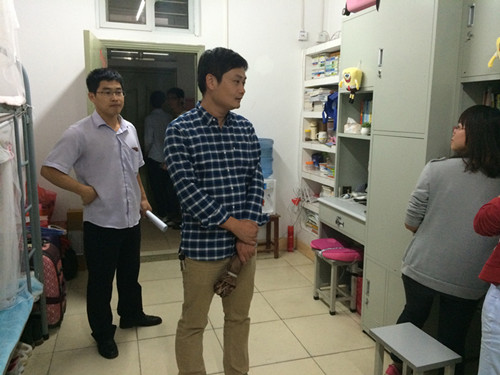 为了深入了解和掌握我院学生近期学习和生活的情况,5月18日晚,我院党委副书记张瑞、学工组长沈菲菲、2013级辅导员吕生富、2015级辅导员柴靓一行走访了我院屏风校区学生宿舍,重点检查宿舍卫生和安全情况。