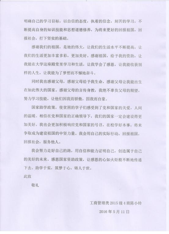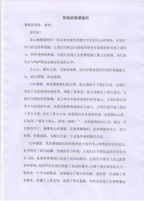 为了让全院师生了解本次感谢信活动成果,感受受助学生的心声,我们将3份优秀感谢信进行发表,以教育引导更多的同学学会感恩、奋发图强。以下是优秀感谢信作品展示。