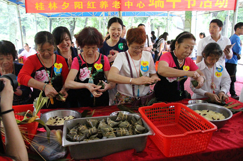 6月4日,我院励合社组织32名志愿者来到夕阳红养老中心进行志愿服务,协助开展并参加由桂林仙源健康产业股份有限公司等单位联合举办的“情‘粽’夕阳红, 爱满夕阳红”活动。