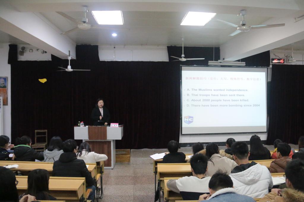 为了帮助学生提升大学英语四级考试学习技巧,我院特邀请新航道英语培训学校的名师于2017年3月21日下午16:00在屏风校区9101教室为大家进行“大学英语四级考试技巧”的专题讲座。管理学院2016级、2015级和2014级学生参加了讲座。