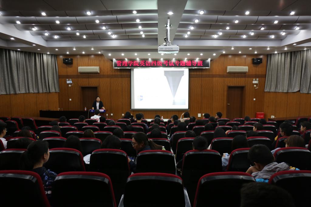 为了帮助学生提升大学英语四级考试学习技巧,我院特别开展了大学英语四级考试专题辅导班。本次辅导班邀请了新航道英语培训学校的老师Ivy作专题讲座。讲座于2017年4月26日晚19:00在屏风校区9501教室召开。管理学院2016级、2015级和2014级的部分学生参加了讲座。讲座由卓琳老师主持。