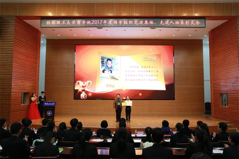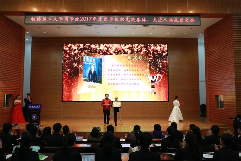 会上,学生党务中心、团委学生会、励合社、学生社区服务管理中心以及易班工作站暨传媒中心代表依次上台对本年度工作进行总结。他们回顾了过去一年中所开展的重点工作,对所取得的成果进行展示,并深刻剖析自身工作中的不足,并提出具体改进措施。随后,沈菲菲老师宣读我院2017年团学组织先进人物表彰文件,与会老师为来自各个学生组织的78名同学颁发奖状、奖品。紧接着,与会老师分别为我院2017年在体育竞技、就业创新、志愿服务、科技创新、专业学习、自强不息等10名各方面表现突出的“年度人物”,宣读颁奖词并颁发证书。