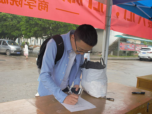 活动前期,励合社的成员们一大早便开始行动起来,搭帐篷、搬桌椅、贴横幅……只为等待每一位爱心捐赠者的到来。 冬去春来,桂工校园里的春天总是会伴随着绵绵细雨,它似乎是我们每次爱心衣物捐赠活动的见证者,“看,有同学过来捐赠了”,坐在设点处的励合社成员总能第一时间看到爱心衣物捐赠者向接待处走来的身影。