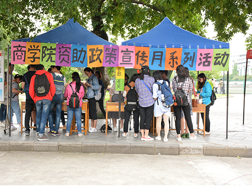 活动期间,设点宣传处前来咨询了解的同学络绎不绝,同学们都积极参与此次活动。在活动现场,同学们扫描关注了商学院励合社官方QQ,从中更清楚的了解到商学院资助政策宣传月系列活动。同时通过问答互动游戏的方式让同学们了解到国家资助政策的相关知识。而对于资助政策有疑问前来咨询的老师和同学们,励合社的成员们都热情的进行了解答。同时,也向同学们介绍了后期将开展的“五个一”活动和资助政策宣传月主题演讲比赛,鼓励同学们积极参与。