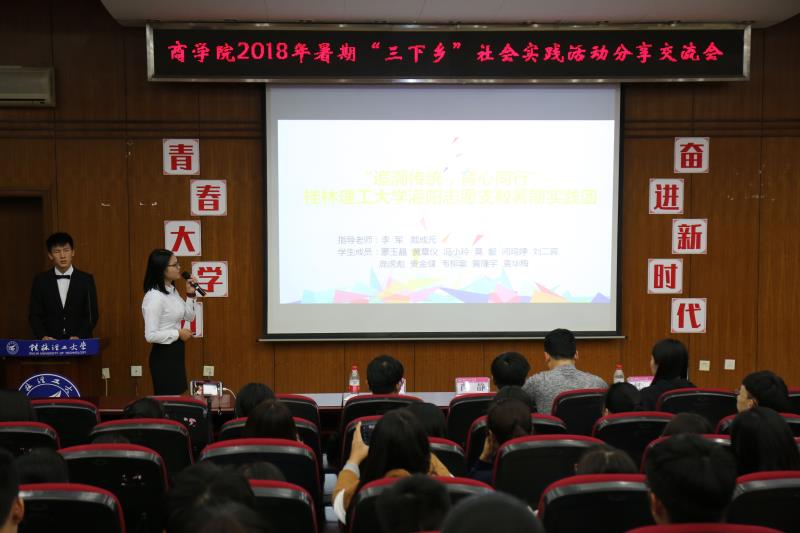 为展示我院2018年暑期“三下乡”社会实践活动成果,激发同学参与社会实践活动的积极性,商学院于10月12日晚在屏风校区9501教室、10月16日晚在雁山校区05307教室举行了2018年暑期“三下乡——实践归来话成长,我们的青春故事”社会实践活动分享交流会。学院各年级辅导及各兄弟学院社会实践部部长出席本次交流分享会,近400名同学参加本次分享会。