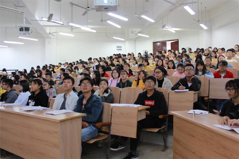 帮助同学们提高英语四级的考前复习效率,我院特邀外国语学院朱敏老师1127日在雁山校区07119教室针对2018级新生进行考前冲刺辅导,250余名2018级新生参加了本次辅导讲座。