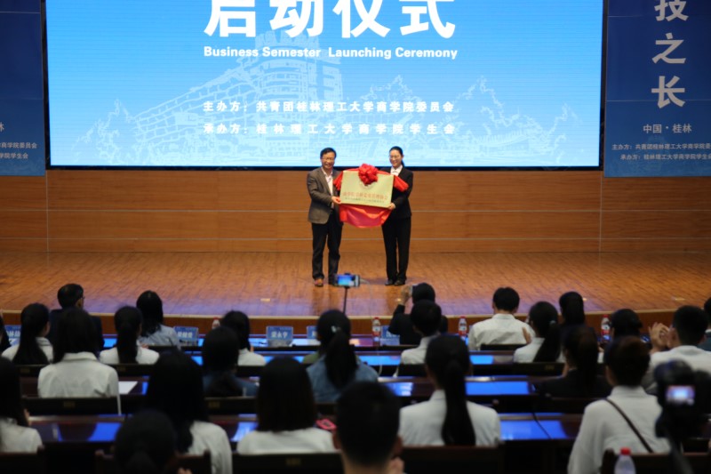 启动仪式上,我院党委书记周章明为“商学期”系列活动的启动致辞,党委副书记沈菲菲作了活动发布,副院长蒙永亨与鞠雅文同学为“商学院学科竞赛管理协会”的成立揭牌。出席人员纷纷表达了对第九届“商学期”系列活动的祝福和期许,希望同学们能够踊跃参与“商学期”系列活动,从实践能力、创新思维、文化修养等方面不断自身综合素质,成为一名优秀的商学人。