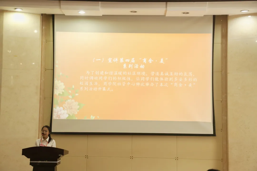 5月5日上午,我院第三届“商舍·美”闭幕式暨第四届“商舍·美”开幕仪式在萃华楼报告厅举行,我院团委书记宋海民、社管中心指导老师胡嘉议、2021级辅导员王贤以及2022级辅导员黄佳玲参加活动。