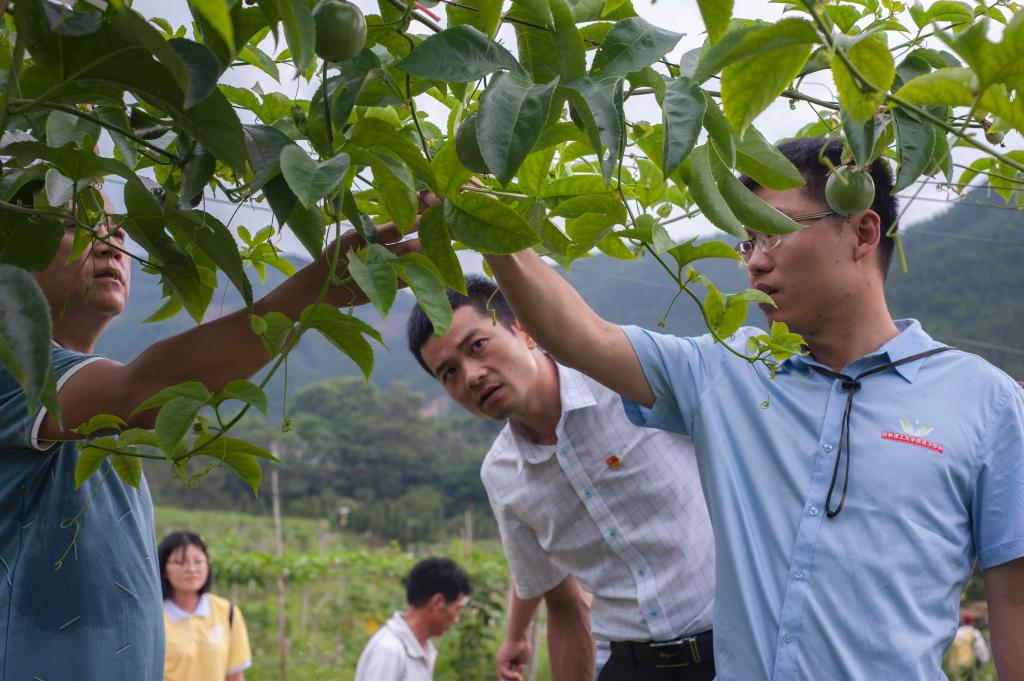 首先,实践团来到灌阳县黄关镇东阳村村委新办公楼,拜访驻村第一书记王洪让,在与书记的交谈中我们得知,为达到2020年全面脱贫的目标,第一书记王洪让和当地专家们充分依据当地环境条件,借助百香果这一丰厚资源,在种植技术、种植方法和营销方式上认真研究,努力发展东阳村的产业,助推农业升级向前迈进,而这些努力也初具成果。