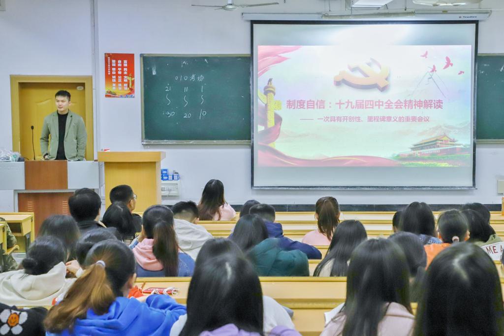 为了深入学习贯彻中共十九届四中全会精神,1215日,按照学校的统一部署,我院以大学生成长成才教育课为载体,开展全院学生“同上一堂课”活动,深入学习贯彻中共十九届四中全会精神。