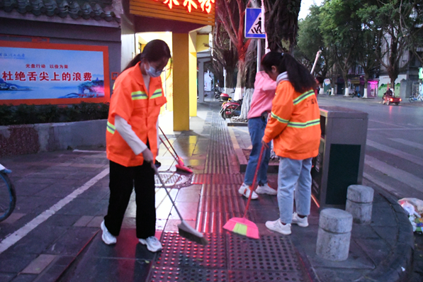 在商学院励合社学生骨干的有序组织下,45名志愿者凌晨六点带上清扫工具准时集合完毕。活动中志愿者们热情高涨,不畏辛苦,跟随环卫工人的步伐,按照他们的指导一点一点的打扫着街道的各个角落。每位志愿者都认真地做好自己负责的工作,经过一个多小时的清洁打扫劳动,志愿者们配合环卫工人完成了对建干路的街道两侧的清扫。同时通过七星环卫站负责人对垃圾分类知识及垃圾处理方式的讲解,志愿者们对环卫工人的工作又有了新的了解。