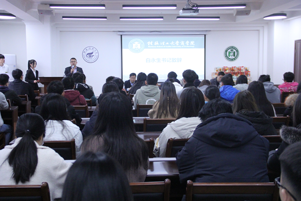 2021年研究生入学考试已进入最后的冲刺阶段,为鼓舞考研学生士气,坚定学生考研信念,增强备考信心,学院于12月10日下午在屏风校区07309会议室举办2021届考研学生誓师大会。学院党委书记白永生、副书记沈菲菲、副院长蒙永亨、侯治平,各教研室主任和各年级辅导员们出席本次大会,2017级全体考研学子参加本次大会。