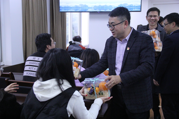 院领导给同学们送上慰问品