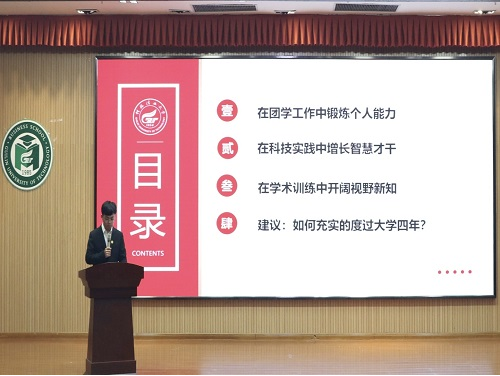 活动伊始,主持人对“中国大学生自强之星”获得者物流管理2018-2班张进澳同学进行简要介绍,激发学生向榜样学习的兴趣。正式报告中,张进澳从团学工作、科技实践和学术训练等方面进行经验分享,鼓励同学们在实践中锻炼能力和拓展新知,在社会服务中强化担当和奉献精神。会后,商学院励合社对张进澳进行专访。张进澳从志愿服务的意义、自身学习经验及如何平衡工作与学业的关系等方面进行了经验分享,激励同学们度过一个充实而有意义的大学生活。