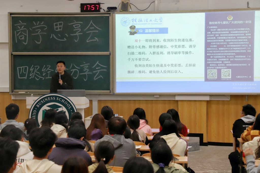 辅导员针对近期网络购物中常见的电信诈骗类型进行讲解,提醒同学们在日常生活中要强化自我保护意识,提高防范能力,并呼吁同学们“双十一”期间科学选择、理性消费,加强维权意识,警惕不良网贷,远离信息诈骗。毕业班辅导员们也结合毕业班的特殊性,指出求职择业中常见诈骗形式,引导同学们提高在求职中的防范意识,增强求职就业的安全性。