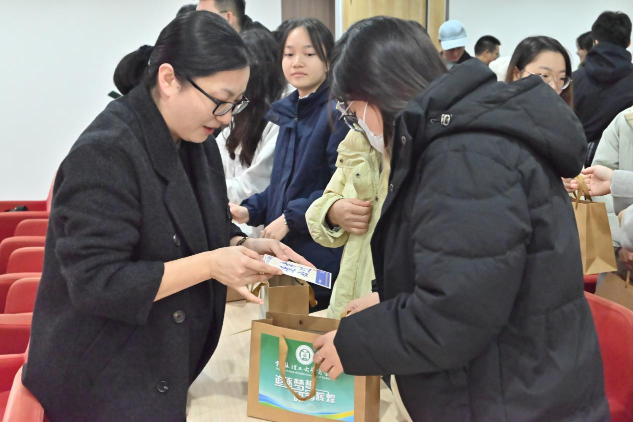 活动最后,老师们为考研的同学们送上心想事“橙”、“力”量满满、一“旺”到底,还有写满祝福语的明信片组成的考研大礼包,送上了学院对同学们的殷切期盼和衷心祝福。