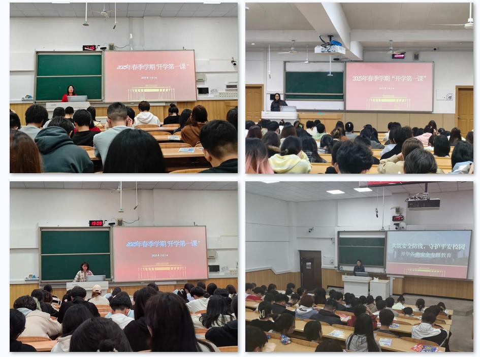 在开学第一课,学院依托大学生成长成才课,全面开展学生安全教育与思想政治引领工作。课上,辅导员结合具体案例,围绕交通安全、宿舍安全、防火防溺水、法治教育、防诈骗等多个方面,对学生进行深入浅出的安全教育。同时,他们引用动画电影《哪吒2》和人工智能“破圈”等假期热点内容,引导学生坚定文化自信,激励他们将理论学习转化为实际行动,以昂扬的奋斗姿态投身到强国建设的新征程中。