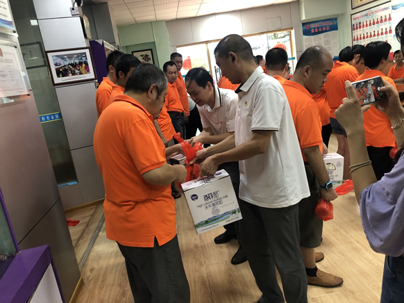 党员同志们送上牛奶和水果