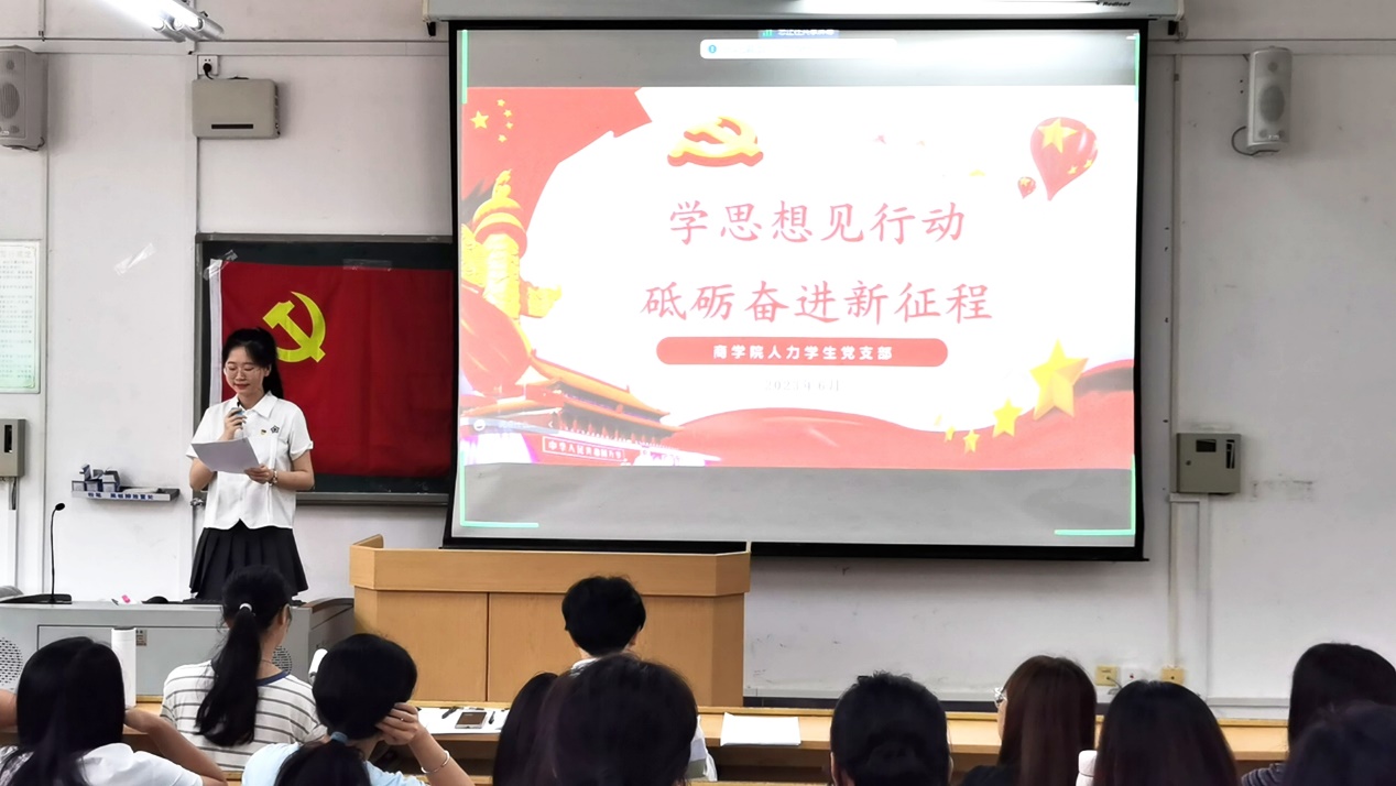 为学习贯彻习近平新时代中国特色社会主义思想,加强理论武装,提高支部同志的思想觉悟。2023年6月26日,人力学生党支部在屏风校区9111教室开展了“学思想见行动,砥砺奋进新征程”主题党日活动。