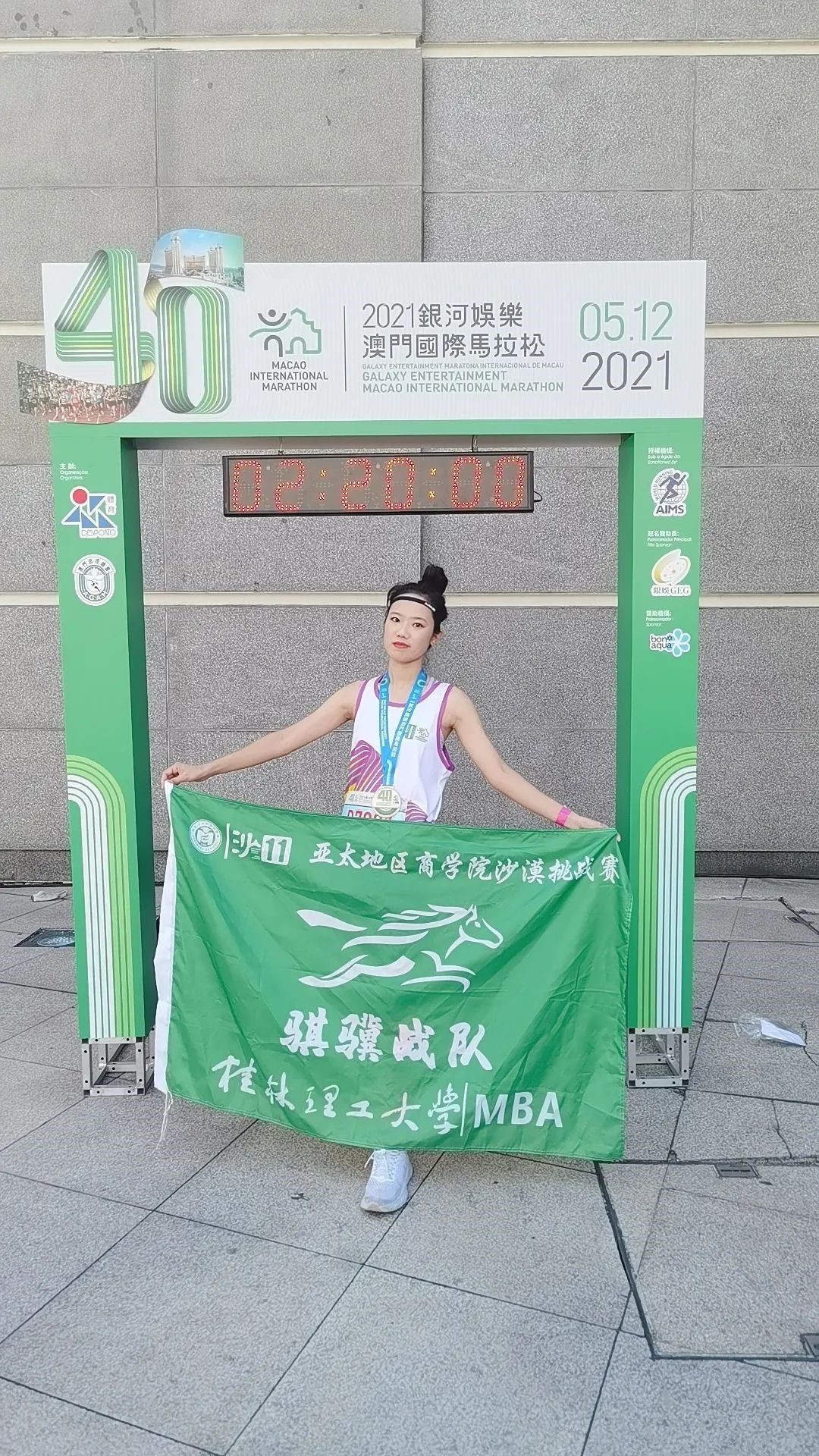 早上6时许,比赛枪声划破了澳门的晨曦。12000余名参赛队伍从奥林匹克体育中心运动场出发,途经嘉乐庇总督大桥、世遗景点妈阁庙以及西湾大桥,最后顺利冲刺到体育中心。比赛中,我校骐骥战队队员黎思求顽强拼搏、坚忍不拔,在半程马拉松项目中以2小时20分钟完成比赛!如此优异成绩的取得充分展现了桂工学子勇于坚持、赢在拼搏、永不放弃的铁人精神,为母校争得荣誉,更是献给母校65周岁最好的生日礼物。