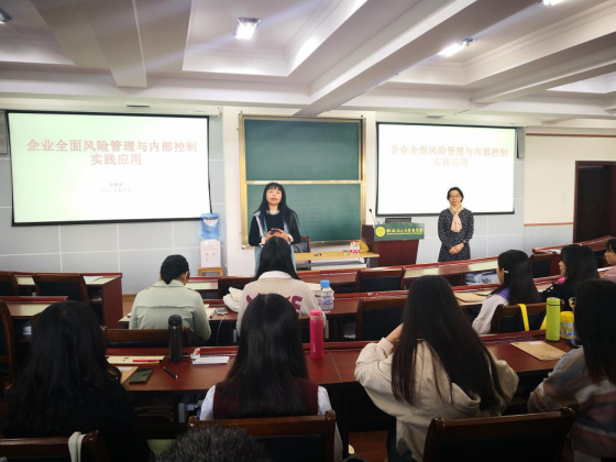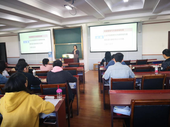 2019年10月29日上午,我校MPAcc校外实践导师李惠青高级会计师在商学院7411室为MPAcc学生举办了题为《企业全面风险管理与内部控制实践应用》的专题讲座。讲座由MPAcc中心李延莉教授主持,全体MPAcc同学参加了本次讲座。