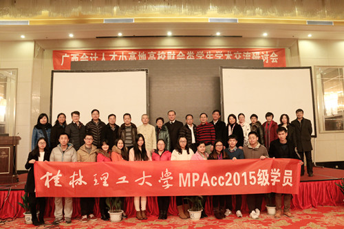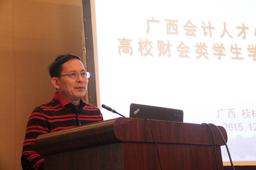 12月12日上午,由广西会计学会主办、我校管理学院承办的2015年“广西会计人才小高地高校财会类学生学术交流研讨会”在桂林桂山华星酒店召开。广西会计学会会长李崇玉教授、我校总会计师曾繁荣教授、贺州学院总会计师王瑞龙教授及来自广西区高校共150名师生代表出席本次会议。开幕式由学院院长连漪教授主持。