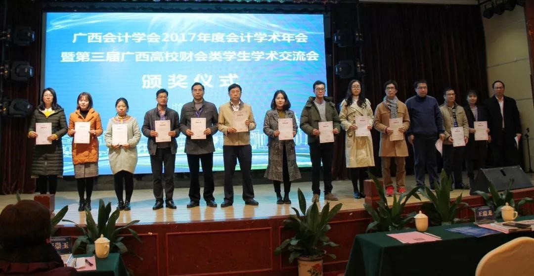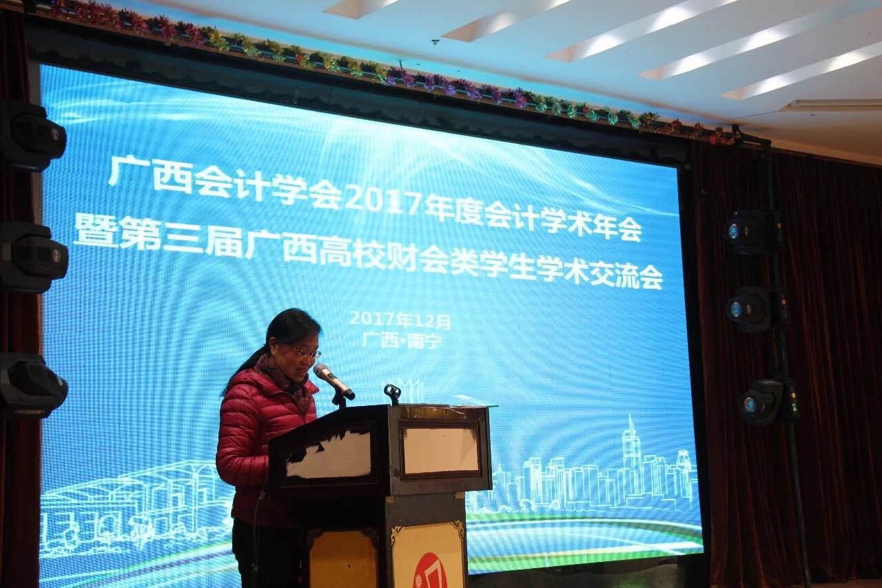 2017年12月16日-12月17日,广西财经学院承办的广西会计学会2017年度会计学术年会暨第三届广西高校财会类学生学术交流会在南宁天妃酒店举办。我院MPAcc主任梁健爱教授、会计系肖彦教授和七名MPACC学生参加本次学术交流。