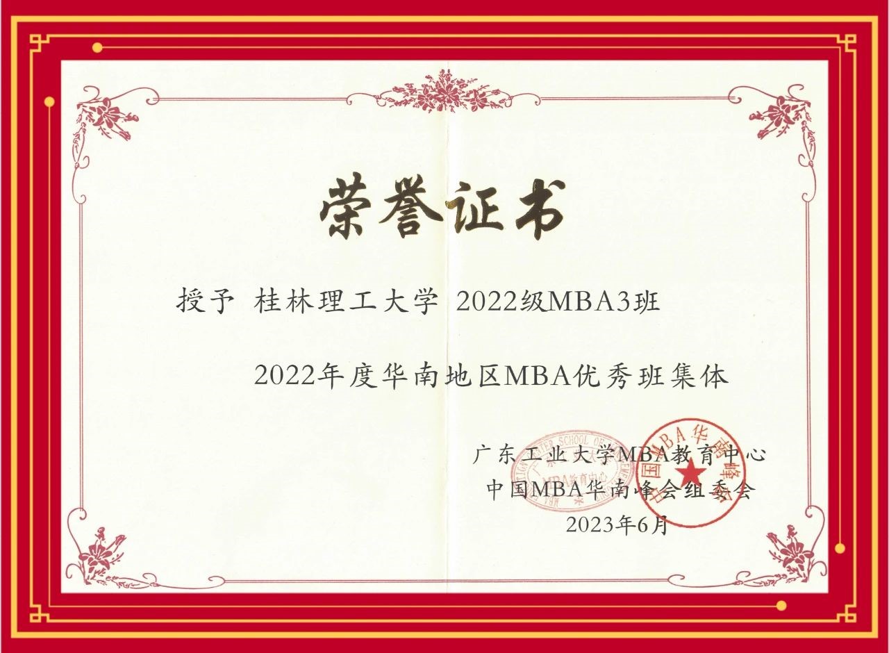 2022 年度华南地区MBA优秀班集体2022级MBA3班