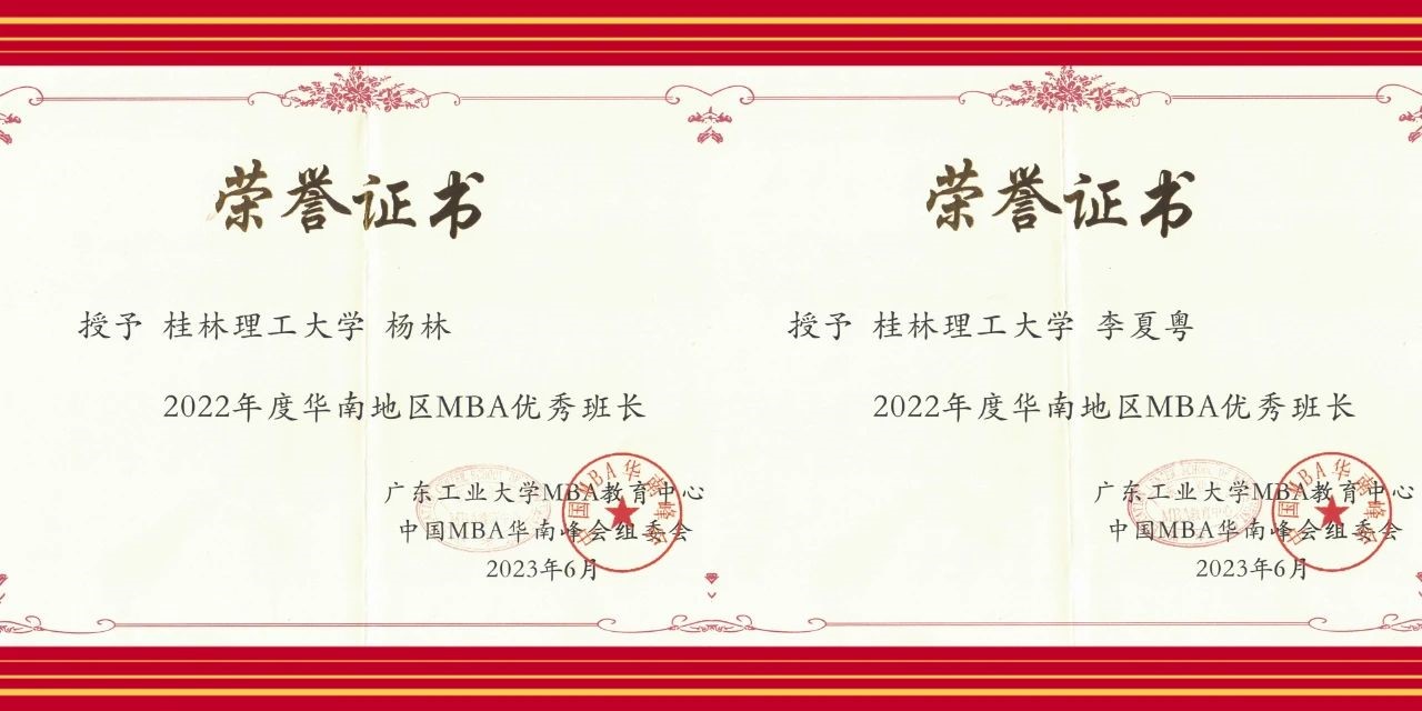 2022年度华南地区MBA优秀班长 杨林 李夏粤