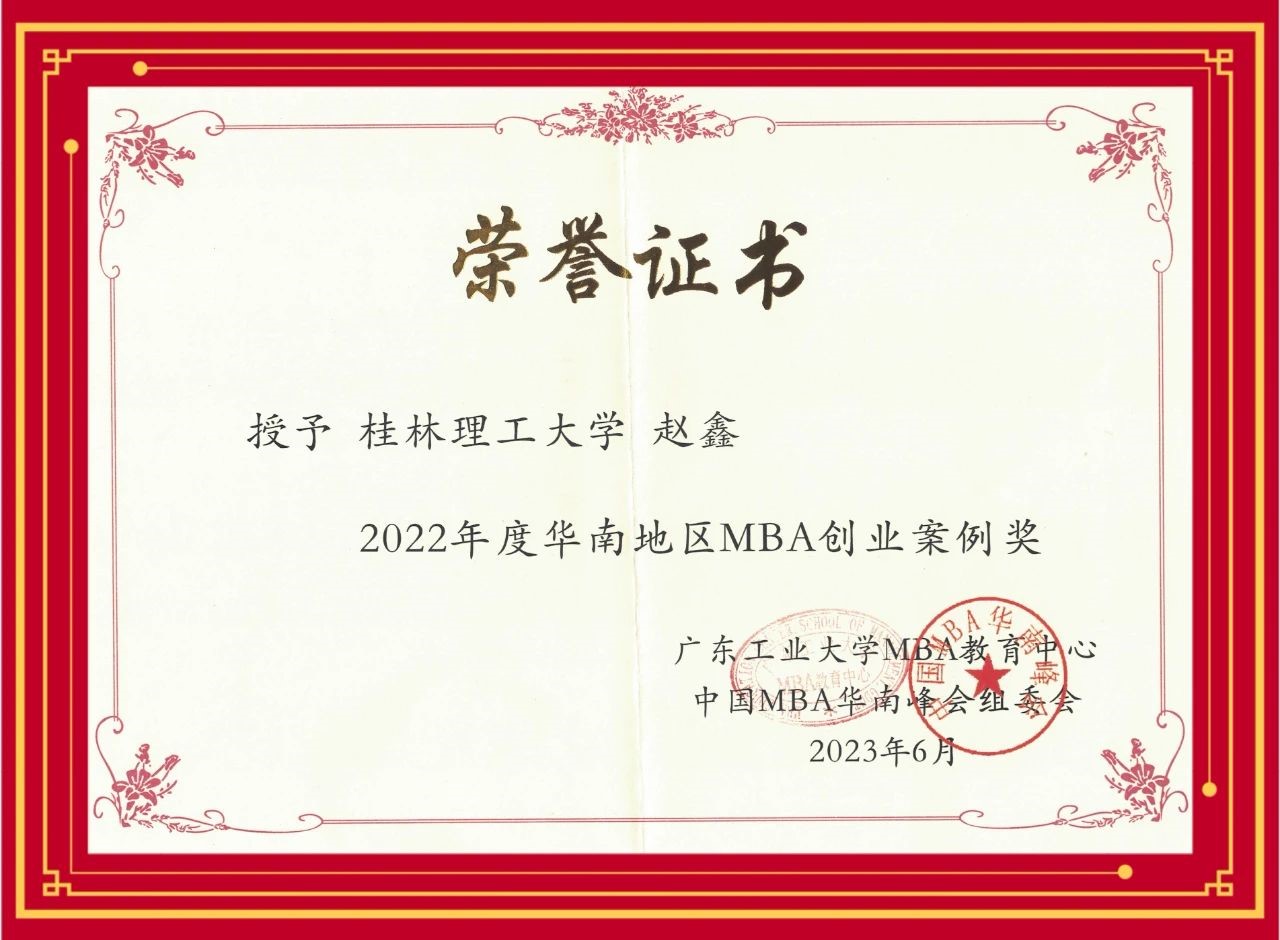 2022年度华南地区MBA创业案例奖 赵鑫