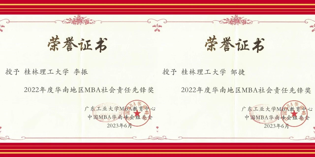 2022 年度华南地区 MBA 社会责任先锋奖 李振 邹捷