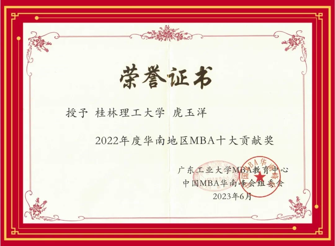 2022年度华南地区MBA十大贡献奖 虎玉洋