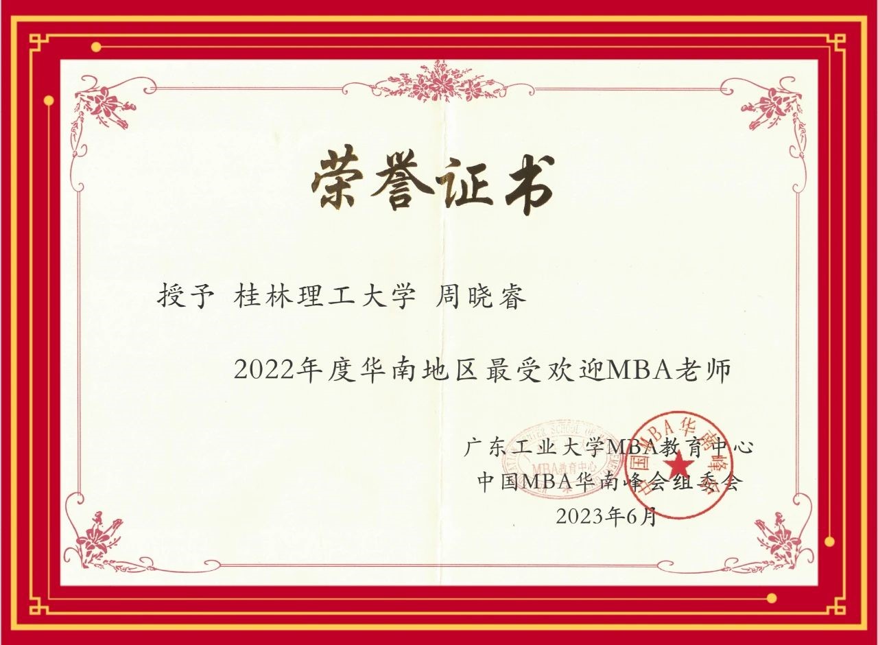 2022年度华南地区最受欢迎MBA老师 周晓睿