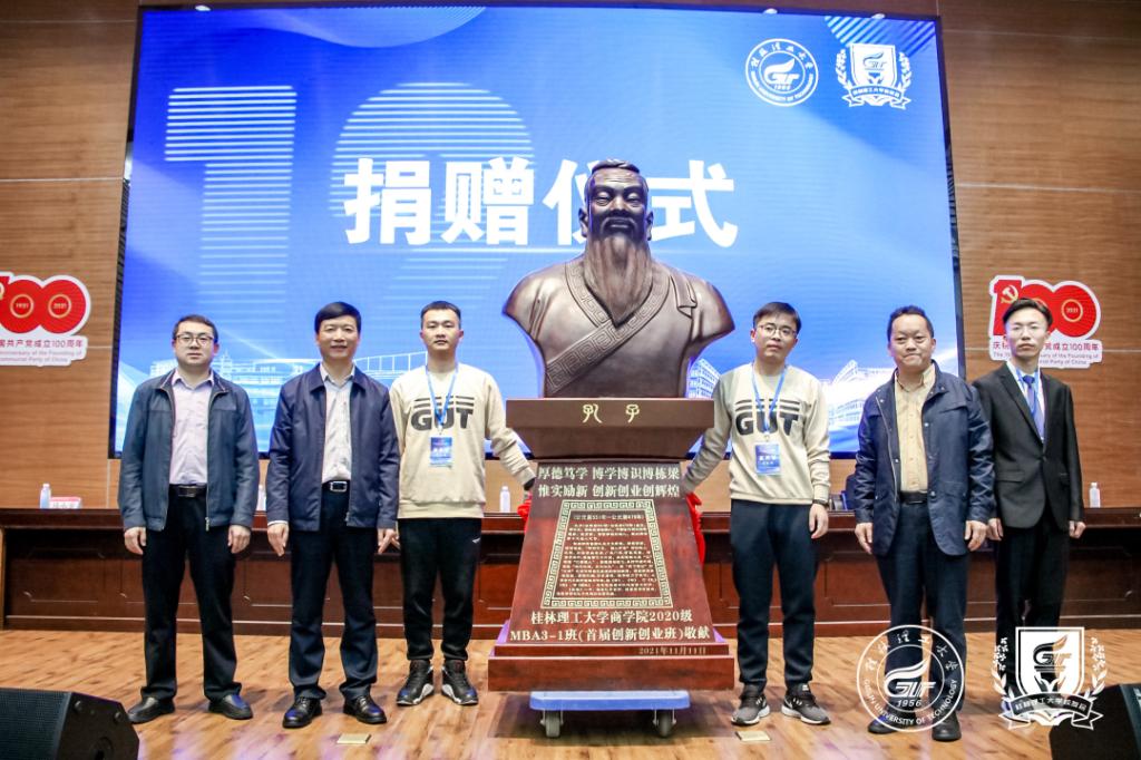 典礼上举行了盛大的孔子像捐赠仪式。孔子雕像由MBA2020级创新创业班学生向学校捐赠,他们希望百战归来再读书的每一个MBA学子时刻不忘立德修身、见贤思齐、努力上进、弘扬传统文化、为开创事业新篇,为beats365(中国区)-唯一官方网站发展再添光彩。解校长、曾总会计师、白书记、2020级MBA学生代表为孔子像揭幕。随后,解校长为受疫情影响未能举办毕业典礼的2018级、2019级的12名毕业生代表举学位授予拔穗仪式,以及对MBA发展做出杰出贡献的二十名校友、学生进行了表彰并合影留念。