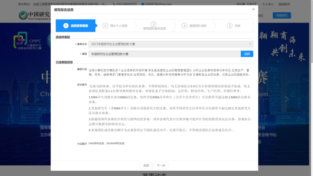 2. 点击“主题赛事”→“中国研究生企业管理创新大赛”