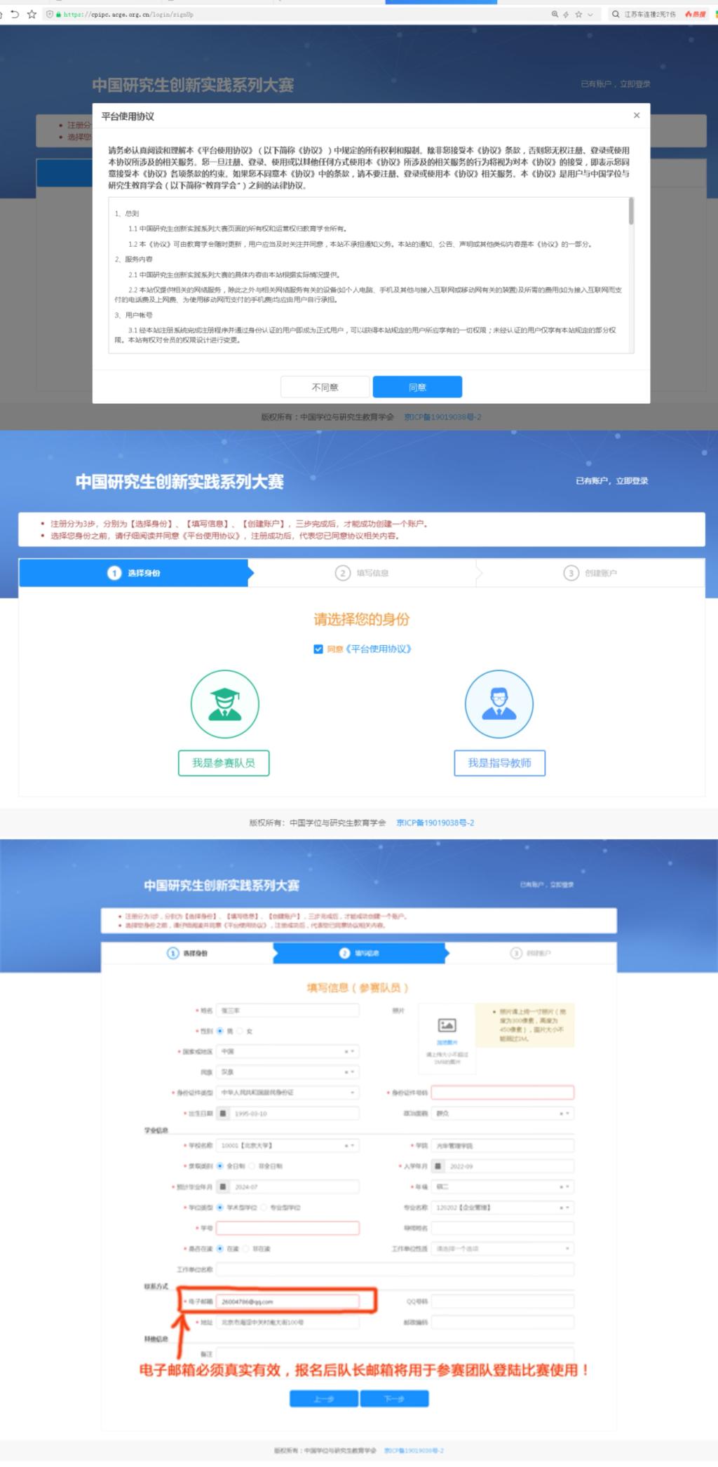注意:参赛选手注册账号时电子邮箱必须真实有效,报名后队长邮箱将用于参赛团队登陆比赛使用。