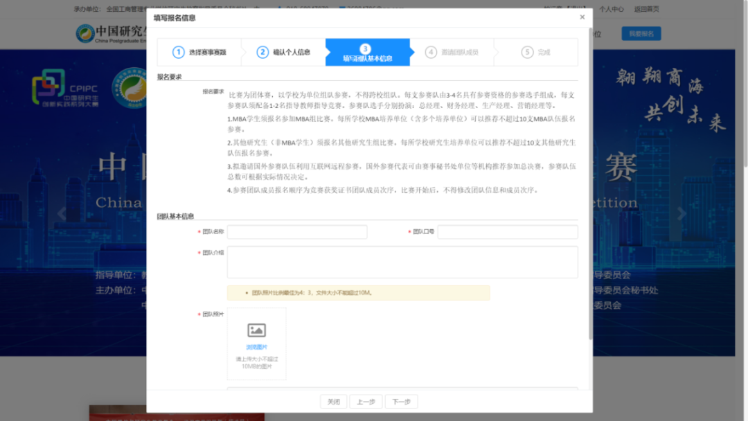 5. 填写团队基本信息(团队名称/团队口号/团队介绍/团队照片)