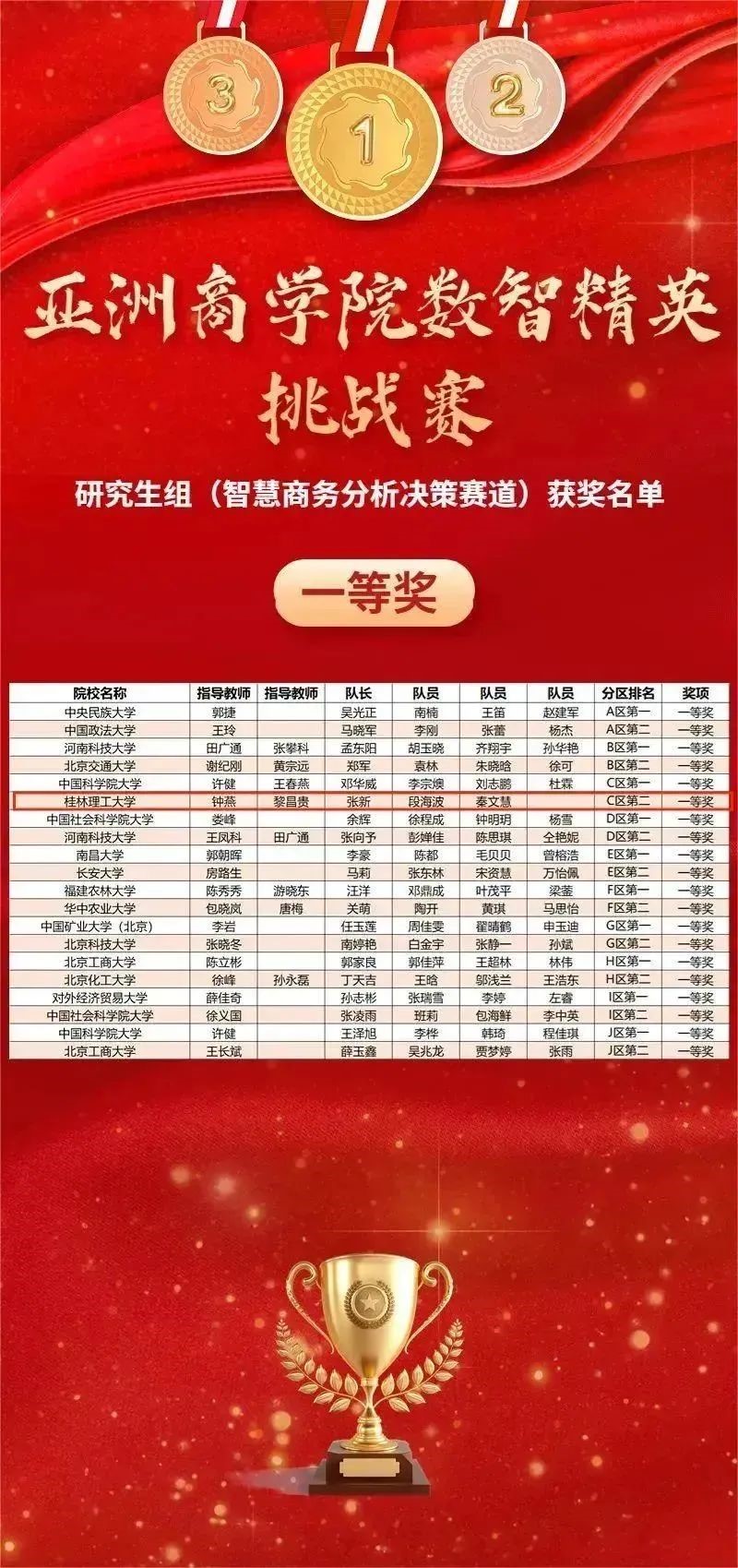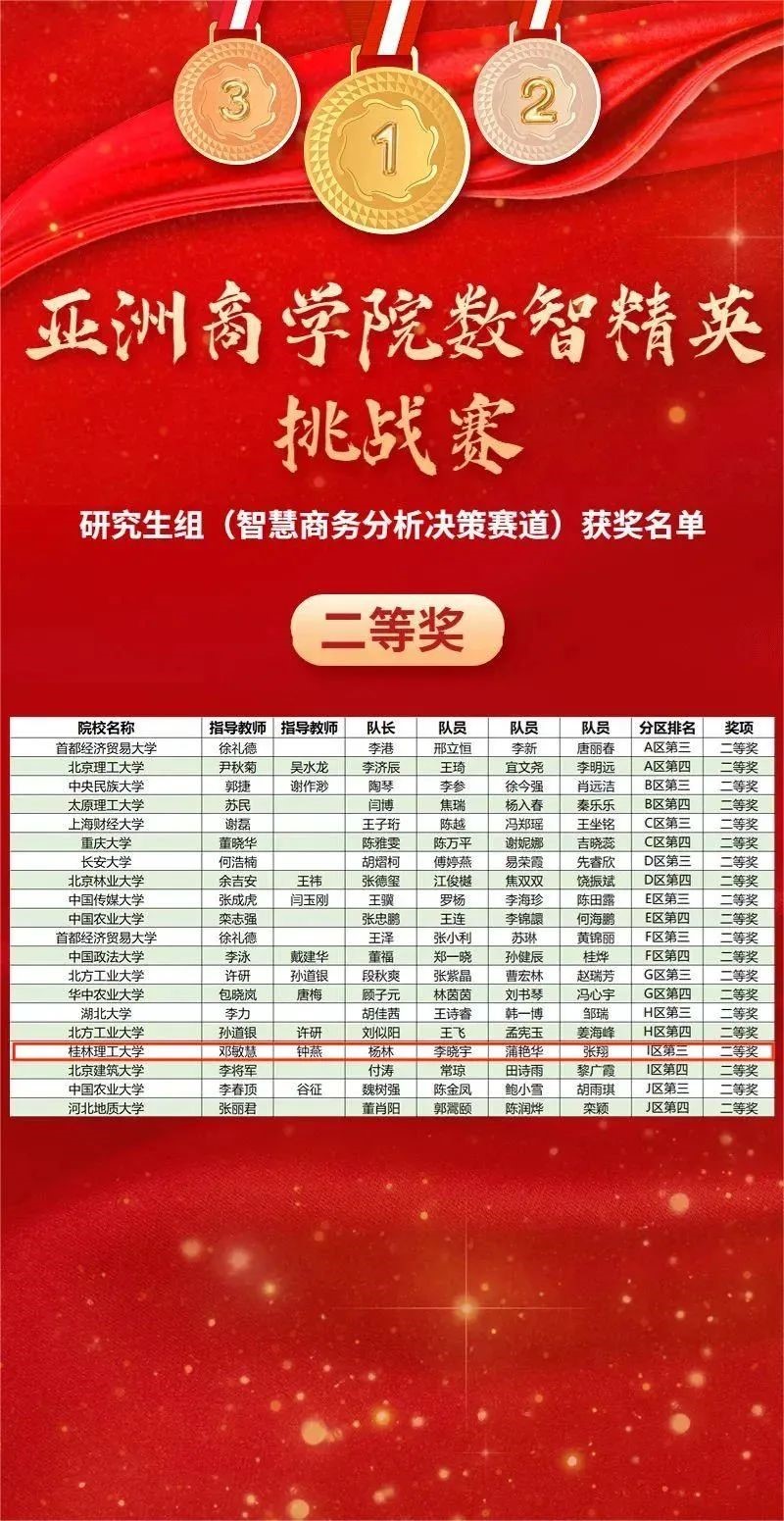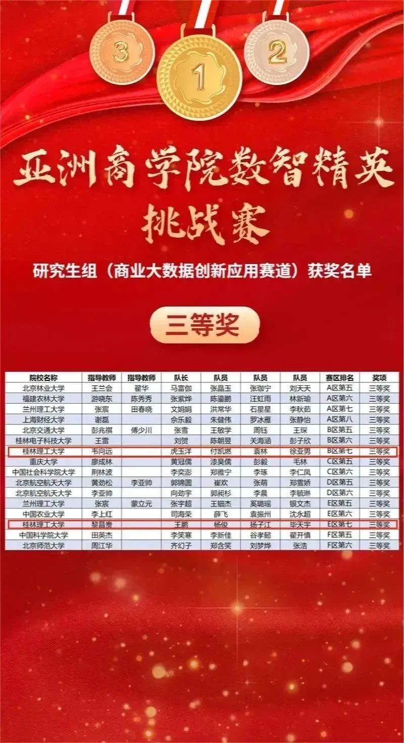 我校MBA教育中心首次组织学生参赛,在钟燕、黎昌贵、邓敏慧、韦向远老师的精心指导下,张新、杨林、虎玉洋、王鹏等学生认真备赛,最终斩获“智慧商务分析决策”赛道一等奖1项、二等奖1项,和“商业大数据创新应用”赛道三等奖2项!