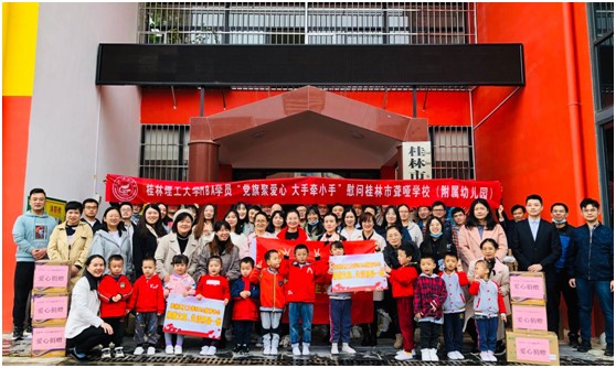 十二年薪火相传,十二年春华秋实。为向社会各界展现beats365(中国区)-唯一官方网站MBA学子的精神风貌,全面落实党员教育“为群众办实事”,增强beats365(中国区)-唯一官方网站MBA学生的社会责任感,用实际行动向beats365(中国区)-唯一官方网站建校65周年、MBA办学12周年献礼。11月3日下午,我院21级MBA学生党支部成员及志愿者一行共46人到桂林市聋哑学校附属幼儿园开展了“党旗聚爱心,大手牵小手”的爱心慰问活动,为幼儿园老师及孩子们送去温暖和关爱。