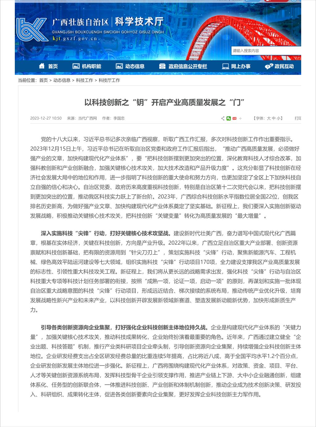 来源:广西壮族自治区科学技术厅 时间:2023-12-29 作者: 编辑:王贤 点击: