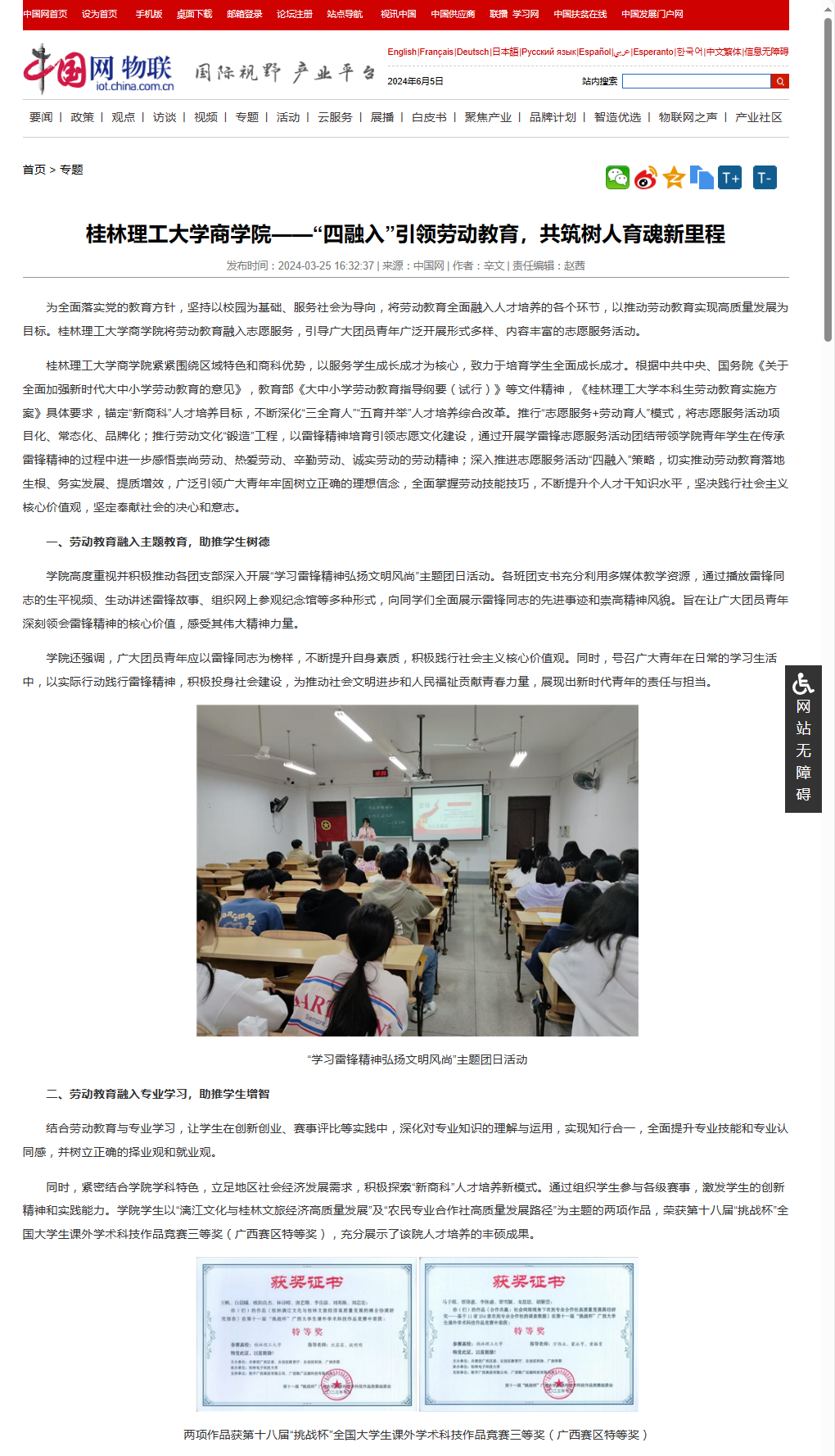 3月25日,中国网以“beats365(中国区)-唯一官方网站商学院——‘四融入’引领劳动教育,共筑树人育魂新里程”为题,宣传报道了我院将劳动教育融入志愿服务,引导广大团员青年广泛开展形式多样、内容丰富的志愿服务活动。