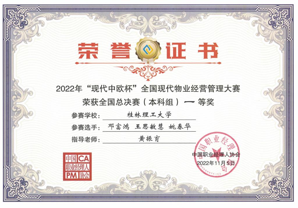 2022年“现代中欧杯”全国现代物业经营管理大赛-一等奖